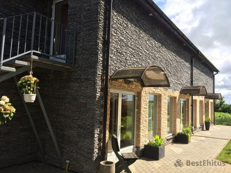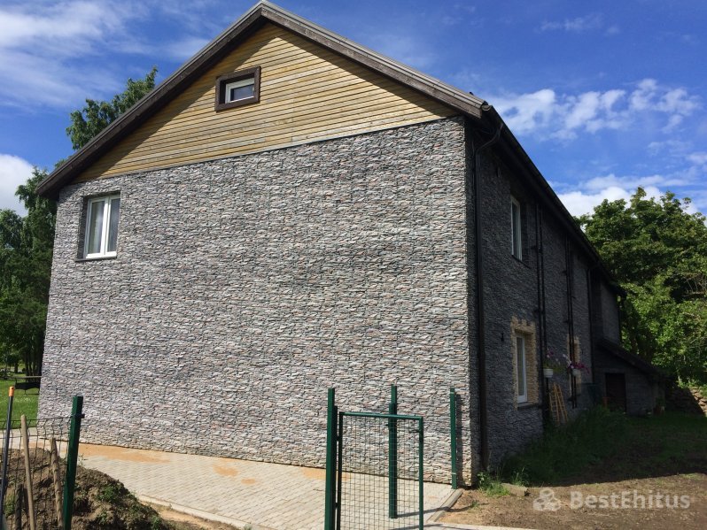 В ходе работы было выполнена кладка стен с утеплением, впоследствии стены обшивались натуральным камнем.
