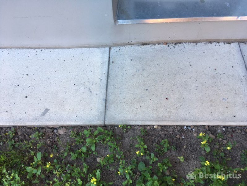 Значительный плюс данной работы по отмостки в том, что в ходе природных явлений, на случай изменения идеальной плоскости покрытия, в любое время возможно отреставрировать отмостку - поднятием плиты с подсыпкой и травбовкой основания. Что, к сожалению, нельзя сделать в случае с залитой бетонной отмосткой.