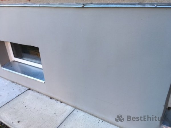 В доме был полностью утеплён цоколь при помощи нано технологии. Керамическое мембранное покрытие способно заменить пенопласт толщиной до 100 мм, благодаря своим теплоизолирующим и влагоотталкивающим свойствам.