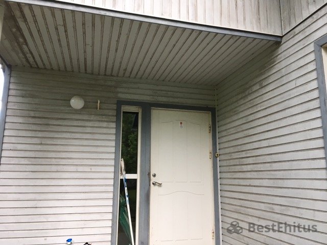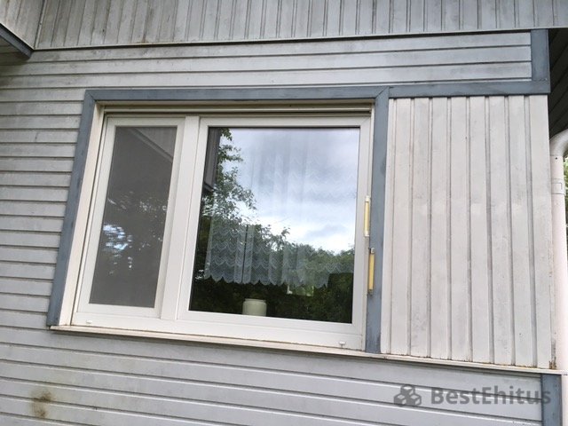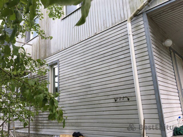 Была заменена часть прогнивших досок на новые фасадные доски.