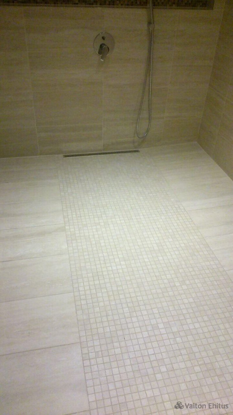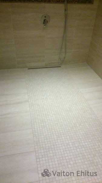 Полы к душевой были выровнены раствором и создан естественный наклон к канализационному сливу. На пол так же производилась укладка кафельной плитки.
