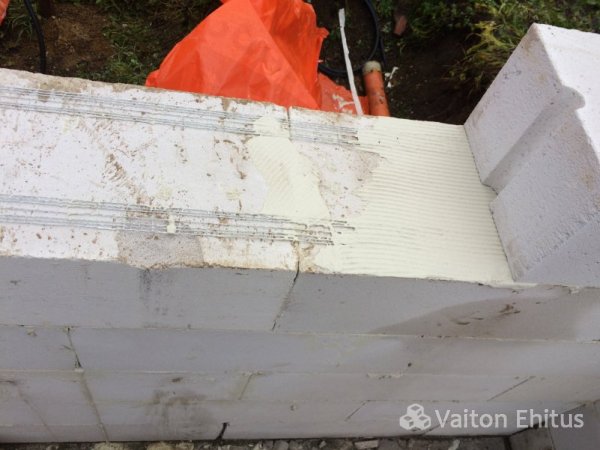 Для уменьшения риска образования трещин в кладке из блоков bauroc, армируем каждый 4-й ряд арматурой Murfor Compact-A.