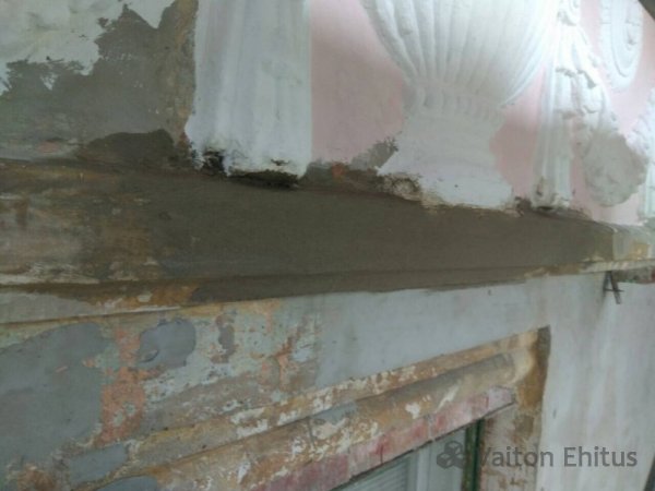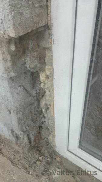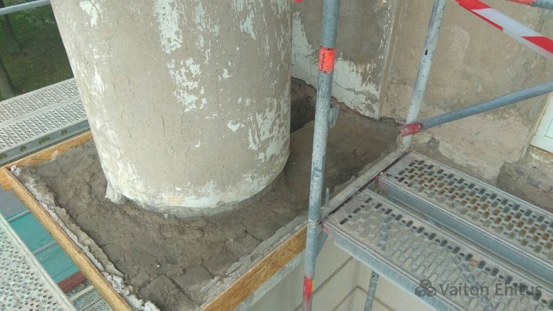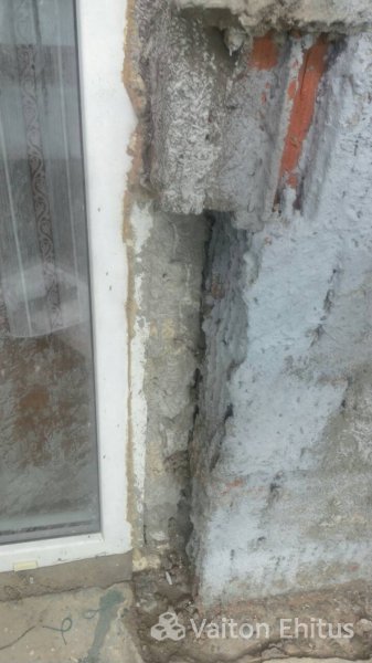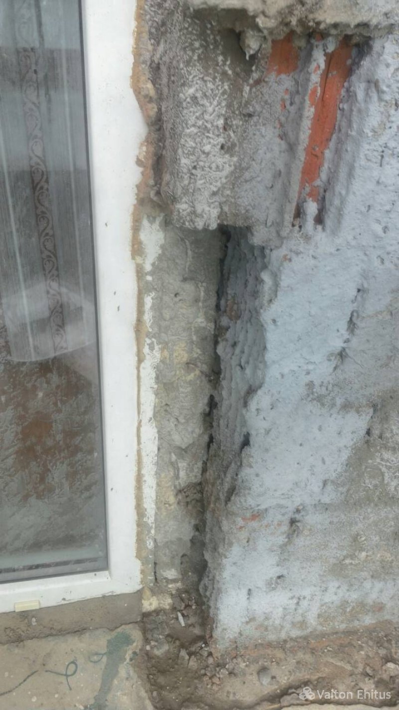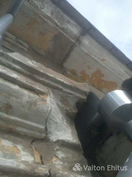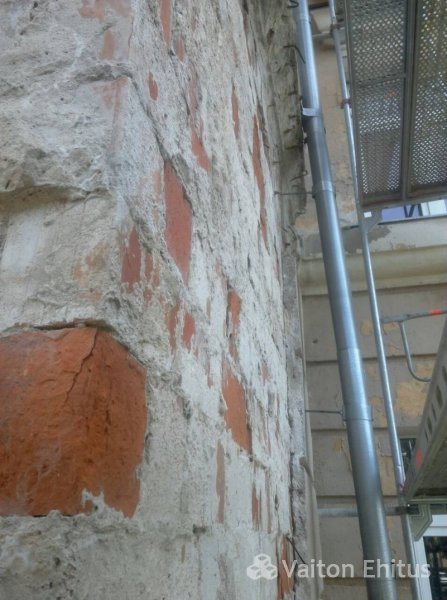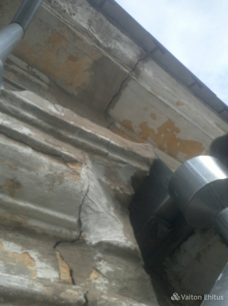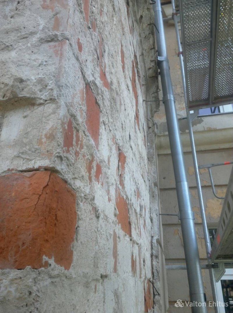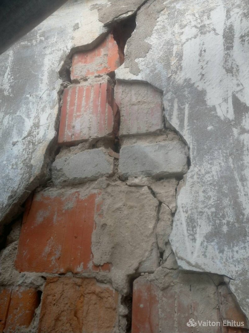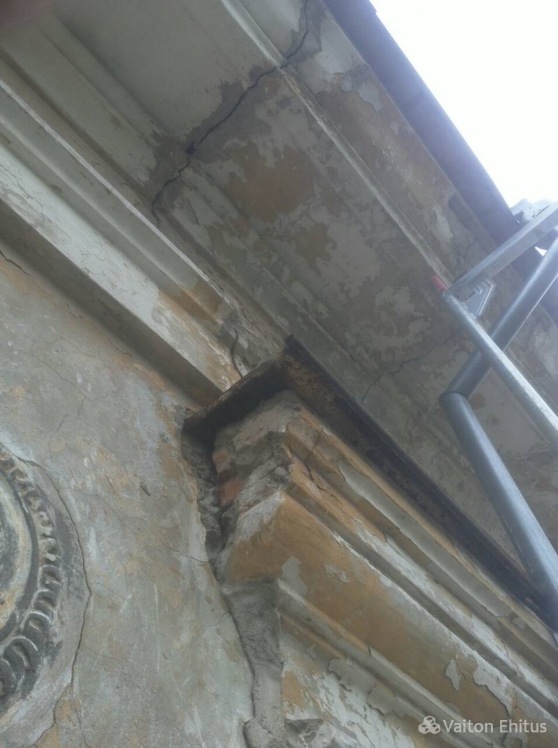 Здание было построено в 1948 году и за эти годы не было проведено никаких работ с фасадом. В ходе реновации была удалена старая штукатурка здания до кирпичной кладки. В результате чего, в некоторых местах кладки обнаружились трещины здания. Одна из трещин оказалась в несущей конструкции кирпичной кладки (фото ниже)