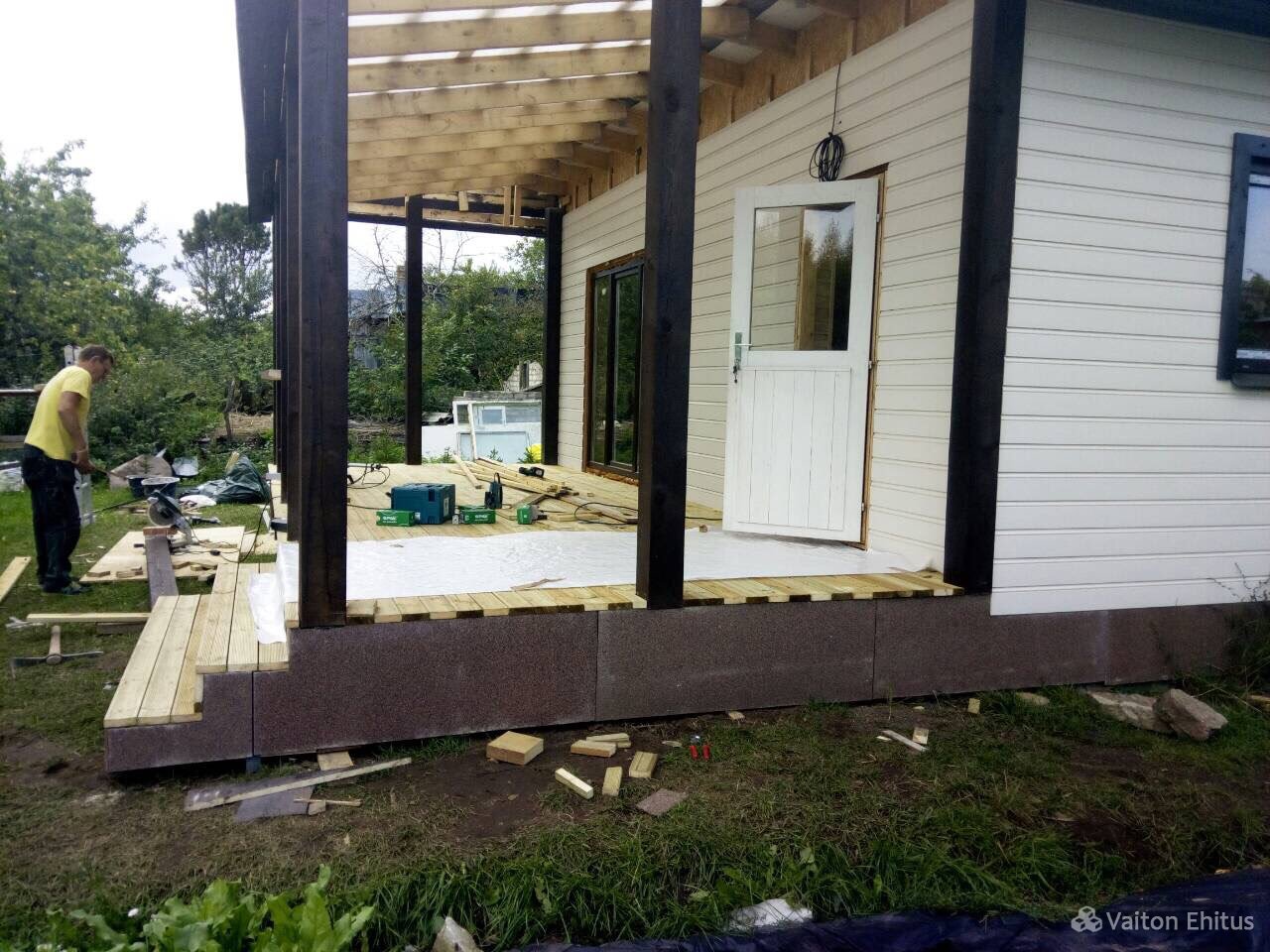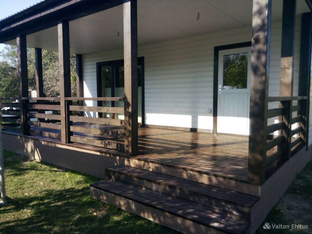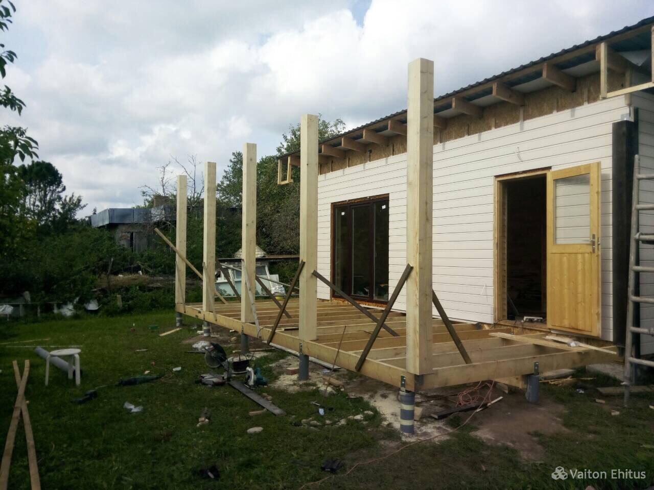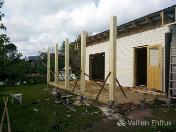 Строительная компания Vaiton Ehitus сделала пристройку веранды к частному дому. Строительство веранды к дому происходило с пропиткой всей древесины антигрибковым раствором, согласно строительным технологиям.