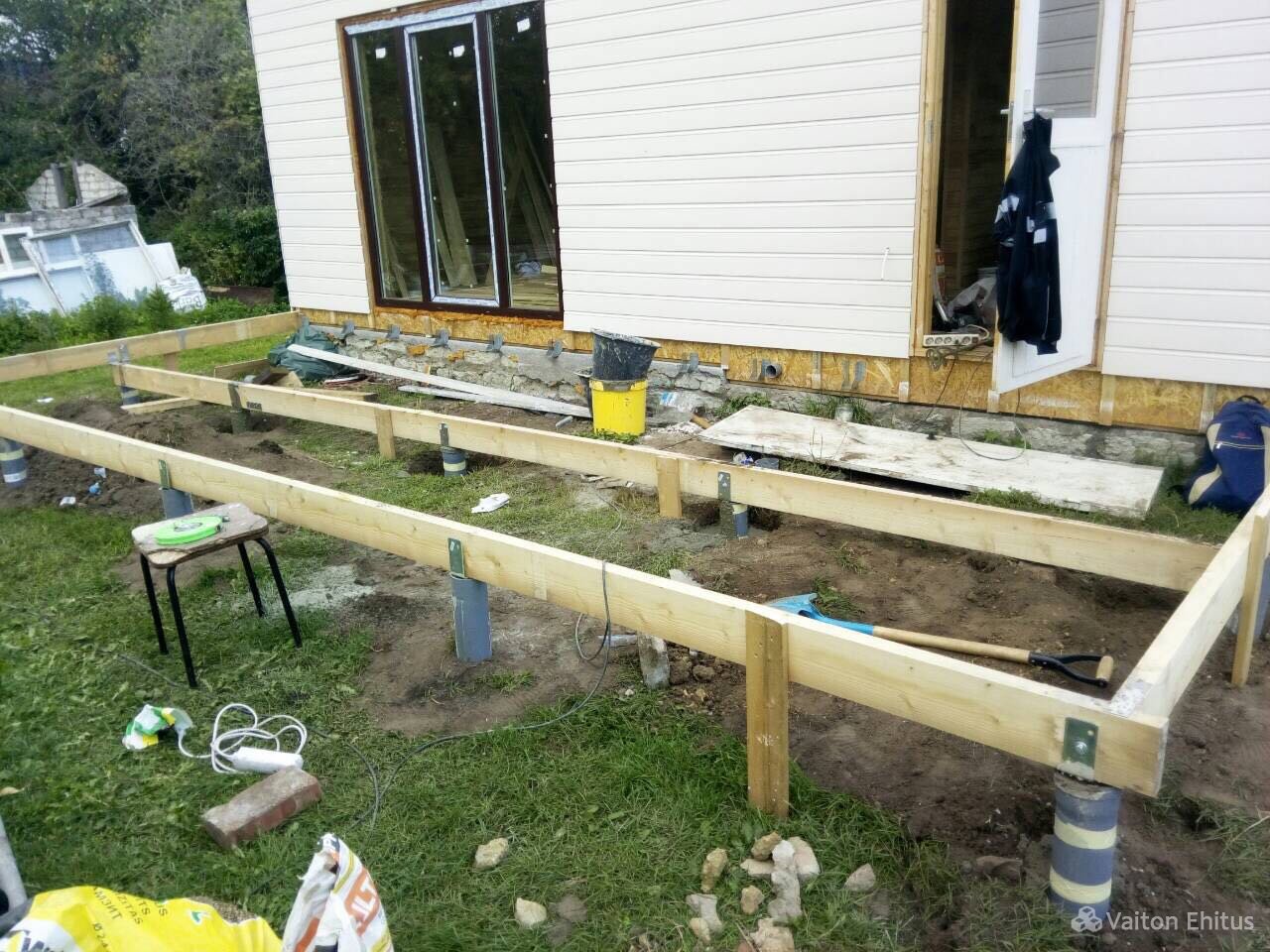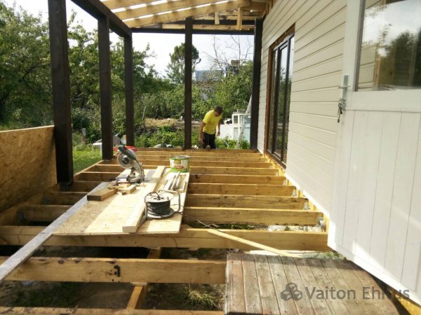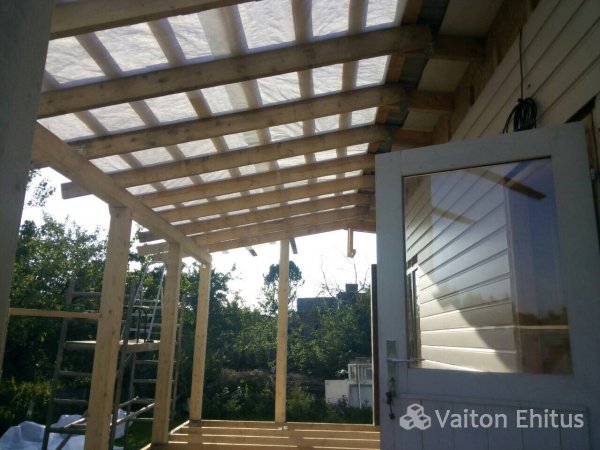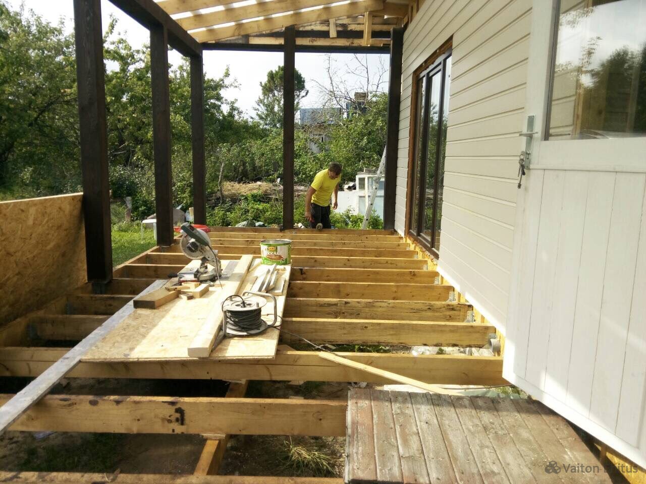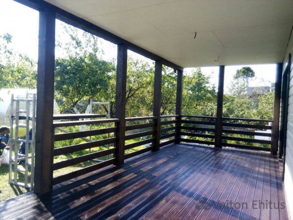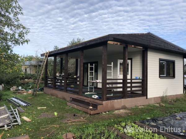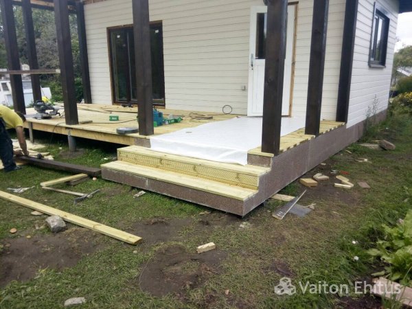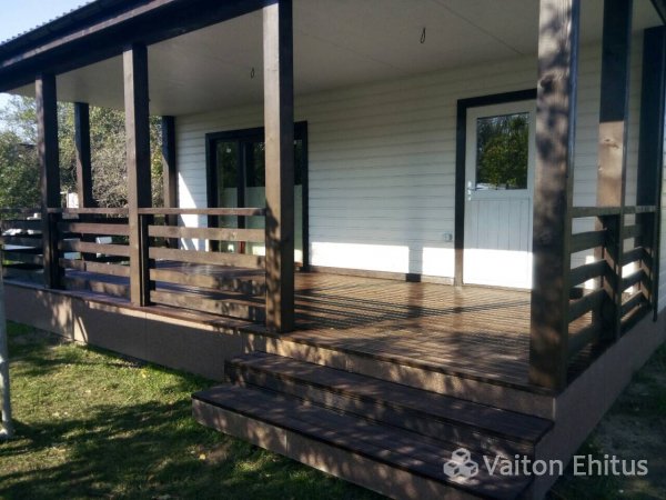 Строительная компания Vaiton Ehitus сделала пристройку веранды к частному дому. Строительство веранды к дому происходило с пропиткой всей древесины антигрибковым раствором, согласно строительным технологиям.