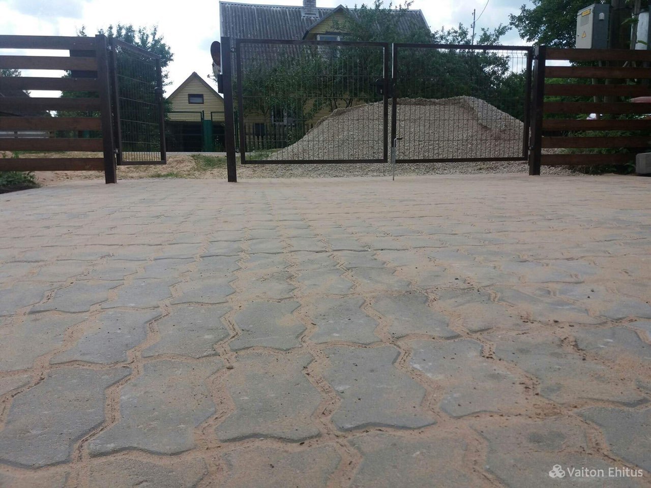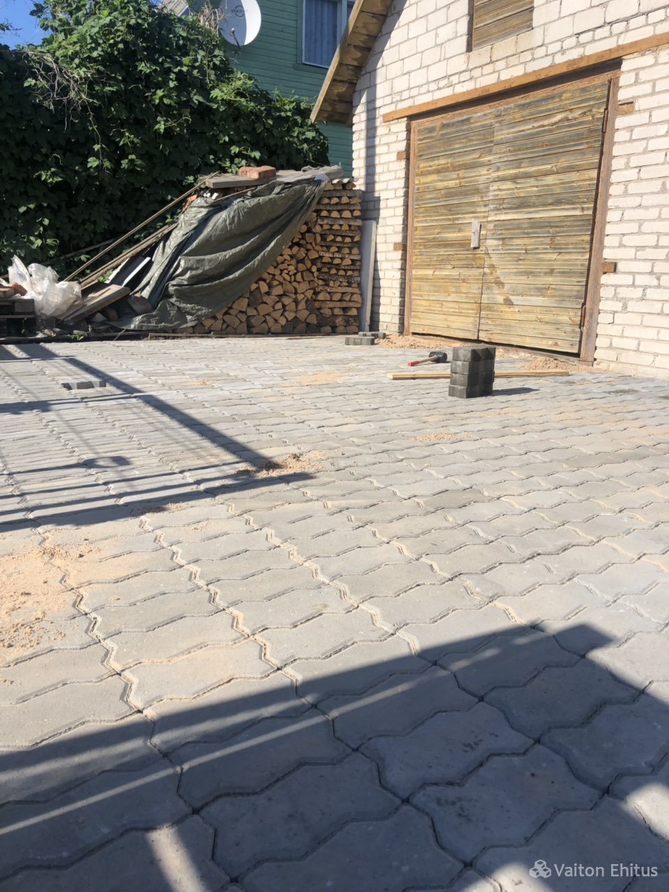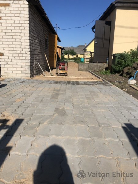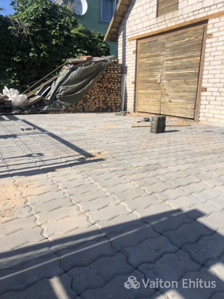 Укладка тротуарной плитки в частном доме. Укладку тротуарной плитки производили совместно с укладкой гранитной платки на поверхность крыльца. Гранитная платка имеет размер 600*300мм , но возможна нарезка гранита любого размера.