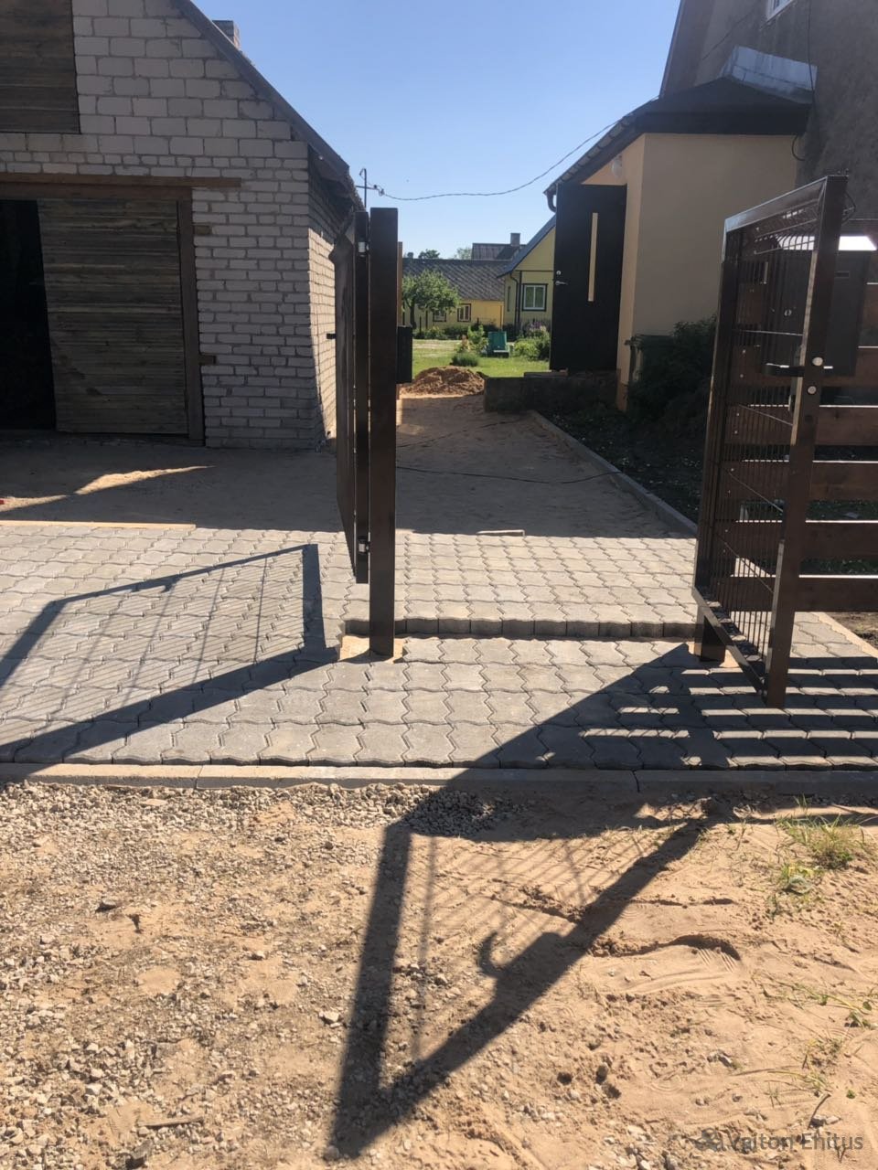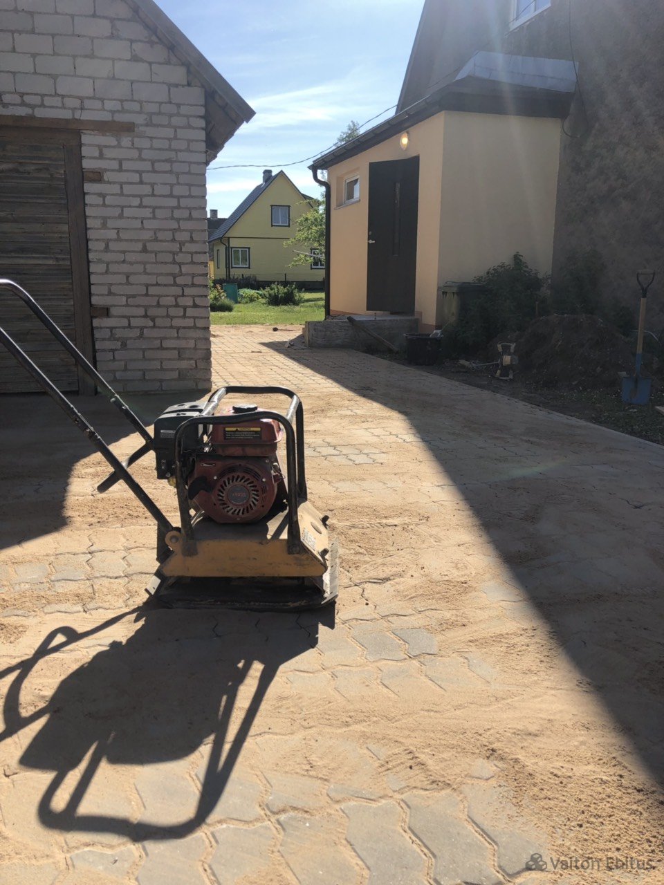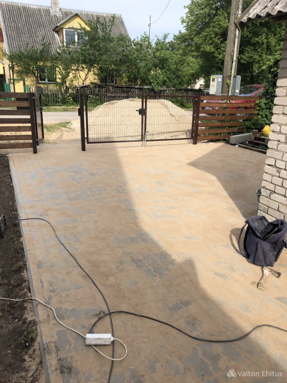Укладка тротуарной плитки в частном доме. Укладку тротуарной плитки производили совместно с укладкой гранитной платки на поверхность крыльца. Гранитная платка имеет размер 600*300мм , но возможна нарезка гранита любого размера.