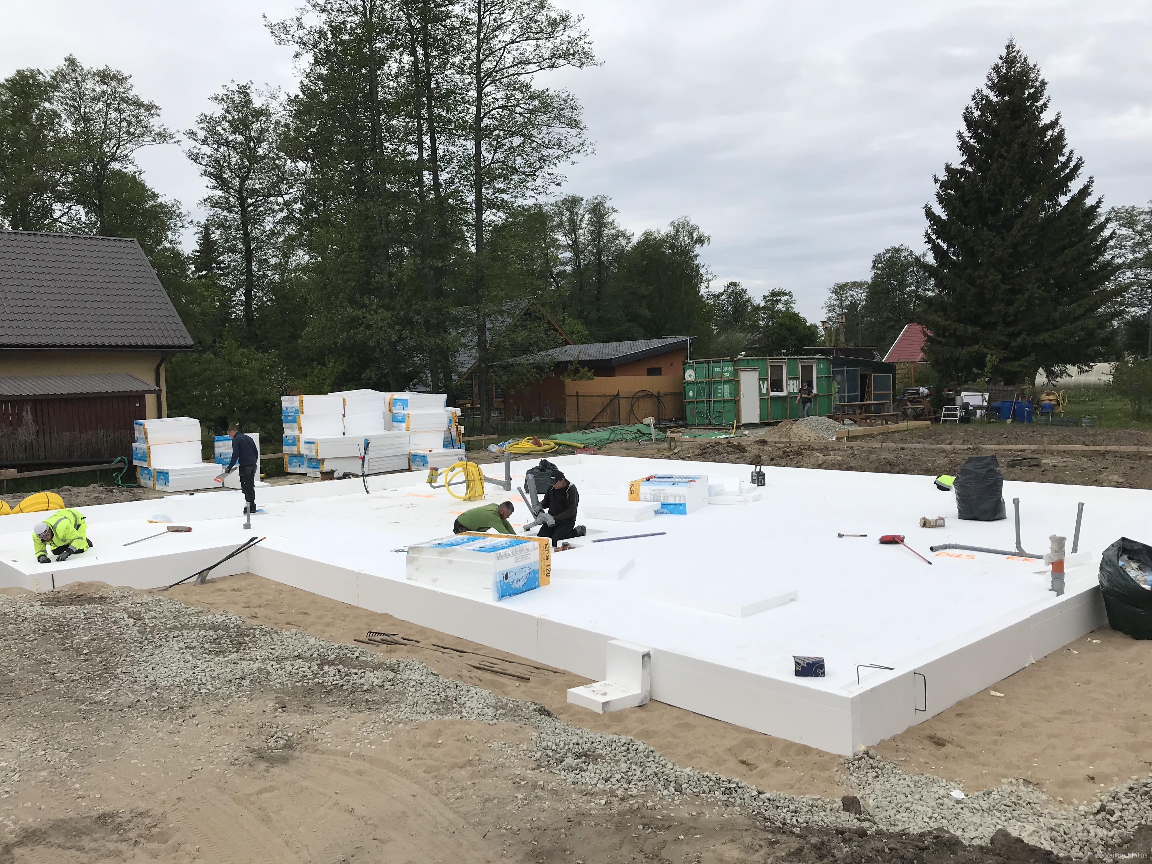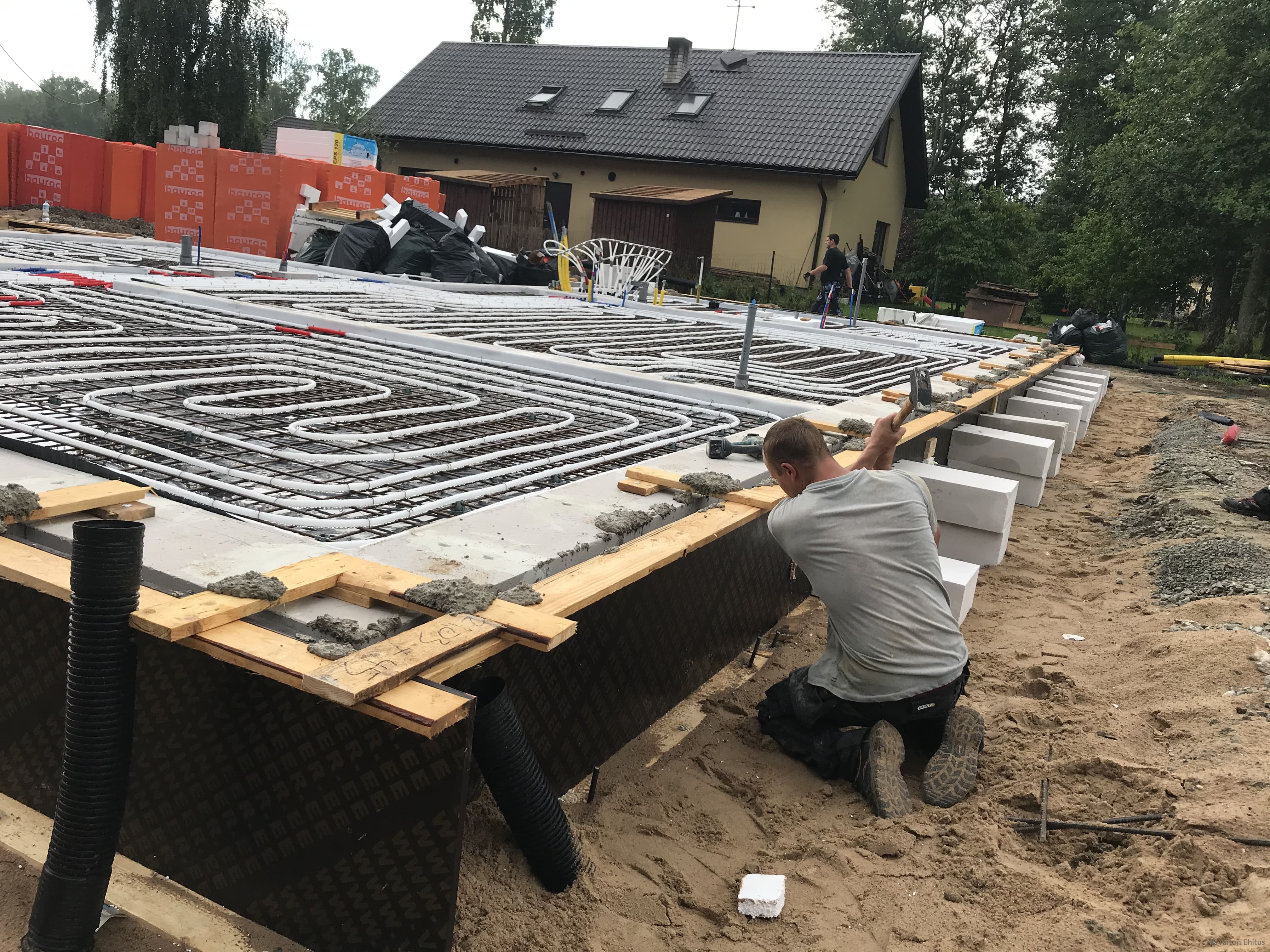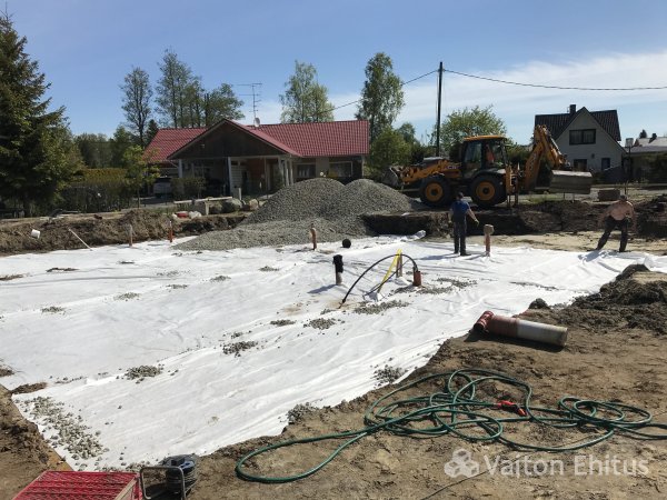 - Устройство фундамента и прокладка коммуникаций выполняют в ходе одной технологической операции, что позволяет сократить сроки строительства.